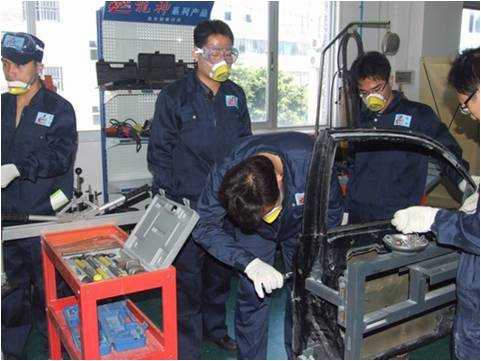 老師們親自實(shí)操鈑金修復(fù)