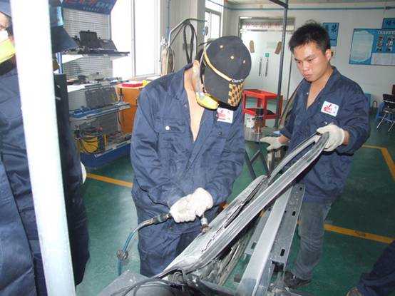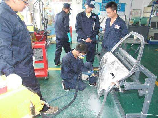 參加培訓的老師所屬學校有:山西交通技師學院、張家口職業(yè)技術學院、深圳寶安職業(yè)技術學校、東營市技術學院、笛威歐亞鄭州職業(yè)技術學校。來五湖四海的老師們特意抽出寶貴的時間前來珠海市龍神有限公司培訓交流確實是難能可貴的。在為期一周時間培訓課程方面,分別有汽車車身鈑金修復和噴涂兩項。