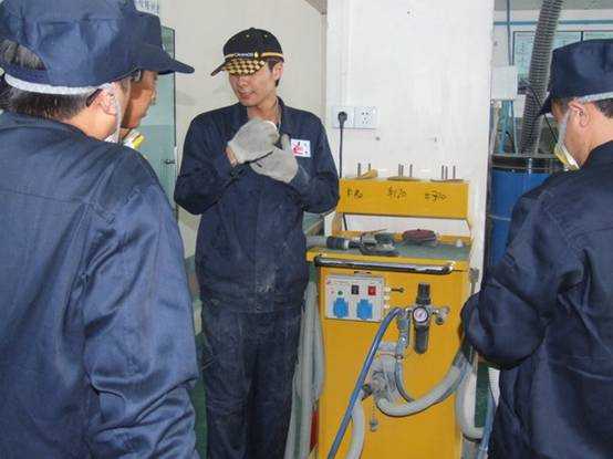 林老師演示除銹機的使用方法