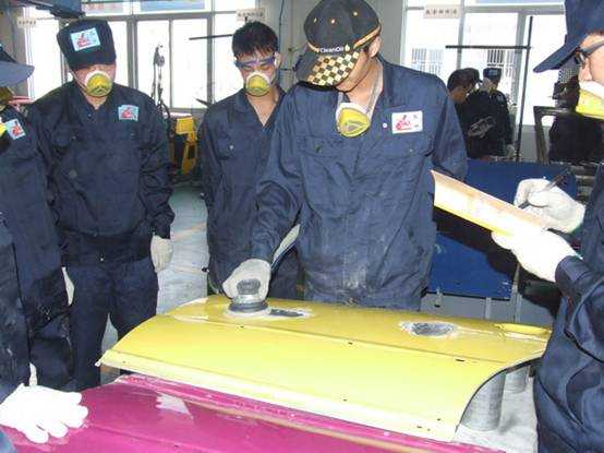 老師們實操磨灰機進行車身修復